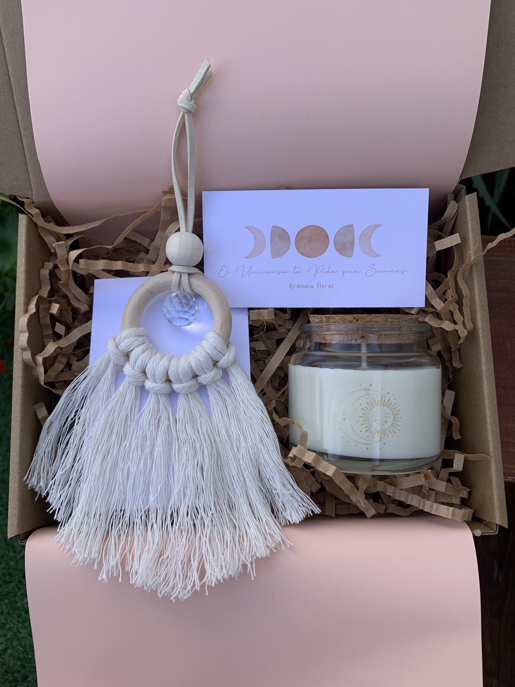 Kit Vela de Soya + Colgante Macramé con Cristal: Un Toque de Calidez para Tu Hogar
