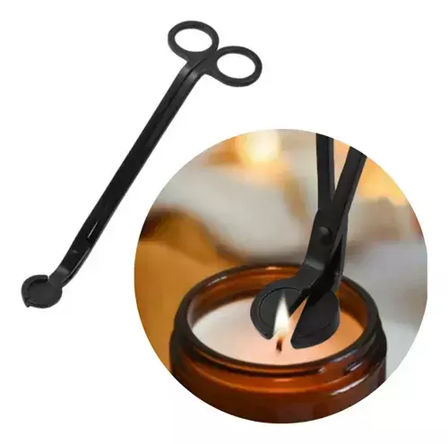 La tijera metálica es una herramienta esencial para recortar las mechas de tus velas, ayudando a prolongar su vida útil y a evitar el exceso de humo. También ayuda a que tu vela se consuma de manera pareja.